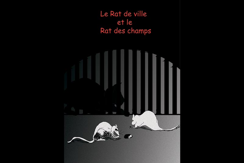 © 2005 - Travail d'étudiante sur le thème des Fables de La Fontaine selon Tim Burton - Couverture de livre sur la fable "Le Rat de Ville et Le Rat des Champs"- Reproduction interdite