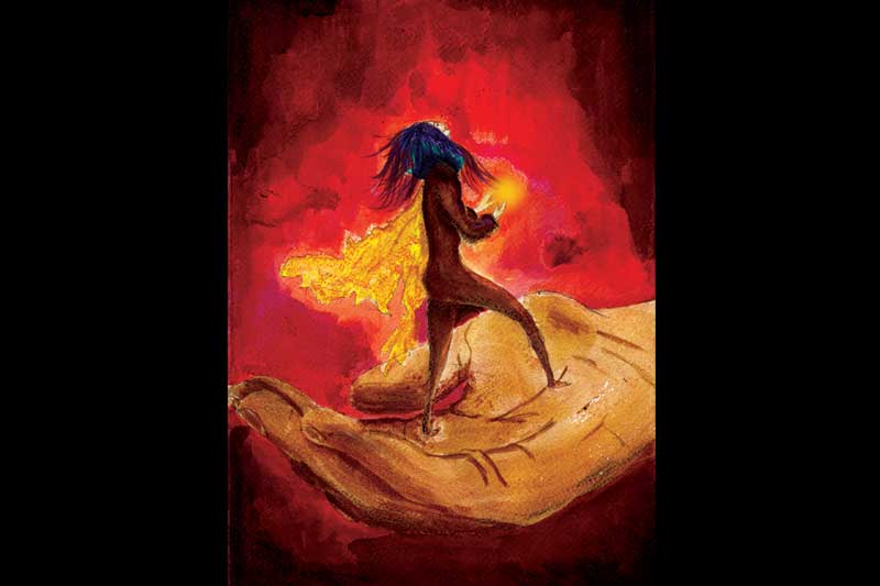 © 2013 - La main de l'Homme, illustration traditionnelle à l'encre, pastels sur le thème de la désolation de la nature - Reproduction interdite