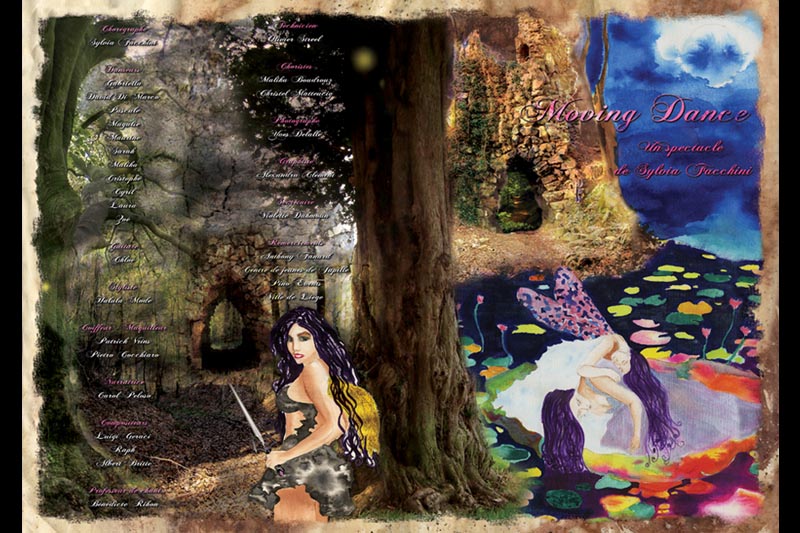 © 2013 - Verso du dossier promotionnel du spectacle de dance "Moving Dance" de Sylvia Facchini - Illustration traditionnelle à l'encre et mise en page sous Photoshop - Reproduction interdite